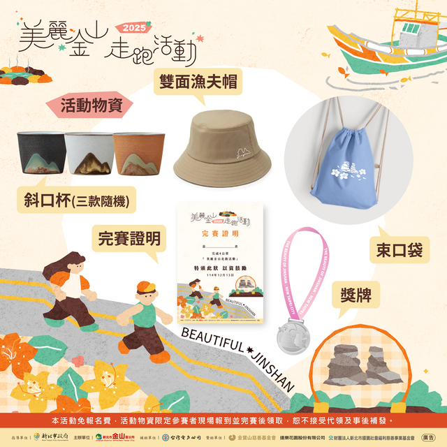 完 賽 禮:獎牌、完賽證明、陶瓷茶杯、雙面漁夫帽、品牌後背包、設計束口袋