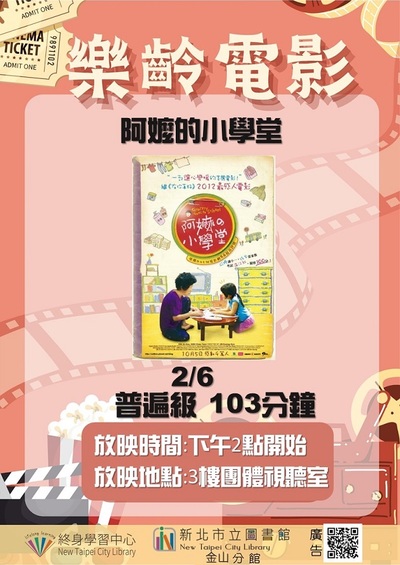 - 主題:阿嬤的小學堂 時間:2/6(二)14:00~15:30 地點:3樓團體視聽教室